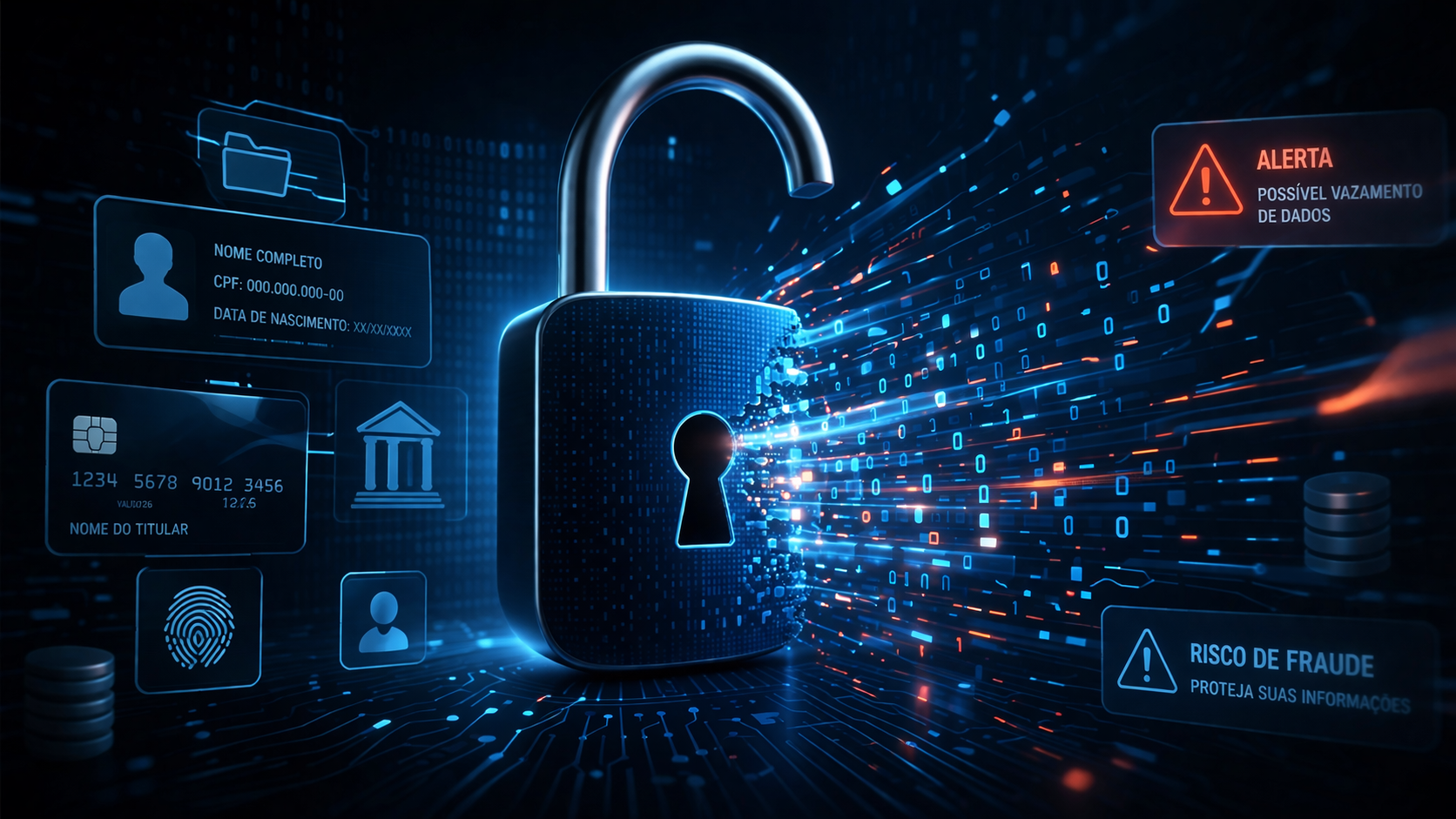 Vazamento de dados pessoais é o acesso, divulgação ou compartilhamento não autorizado de informações como nome, CPF, endereço, senhas ou dados bancários.